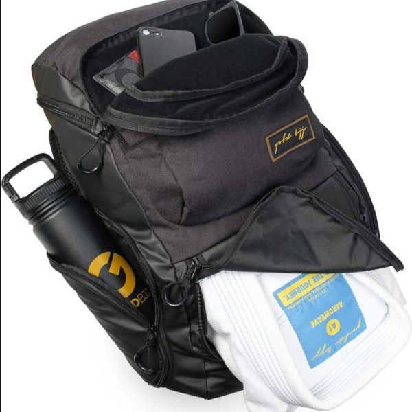 Gold BJJ Jiu Jitsu Backpack - Heavy Duty Gym Bag with Waterproof Gi Pocket